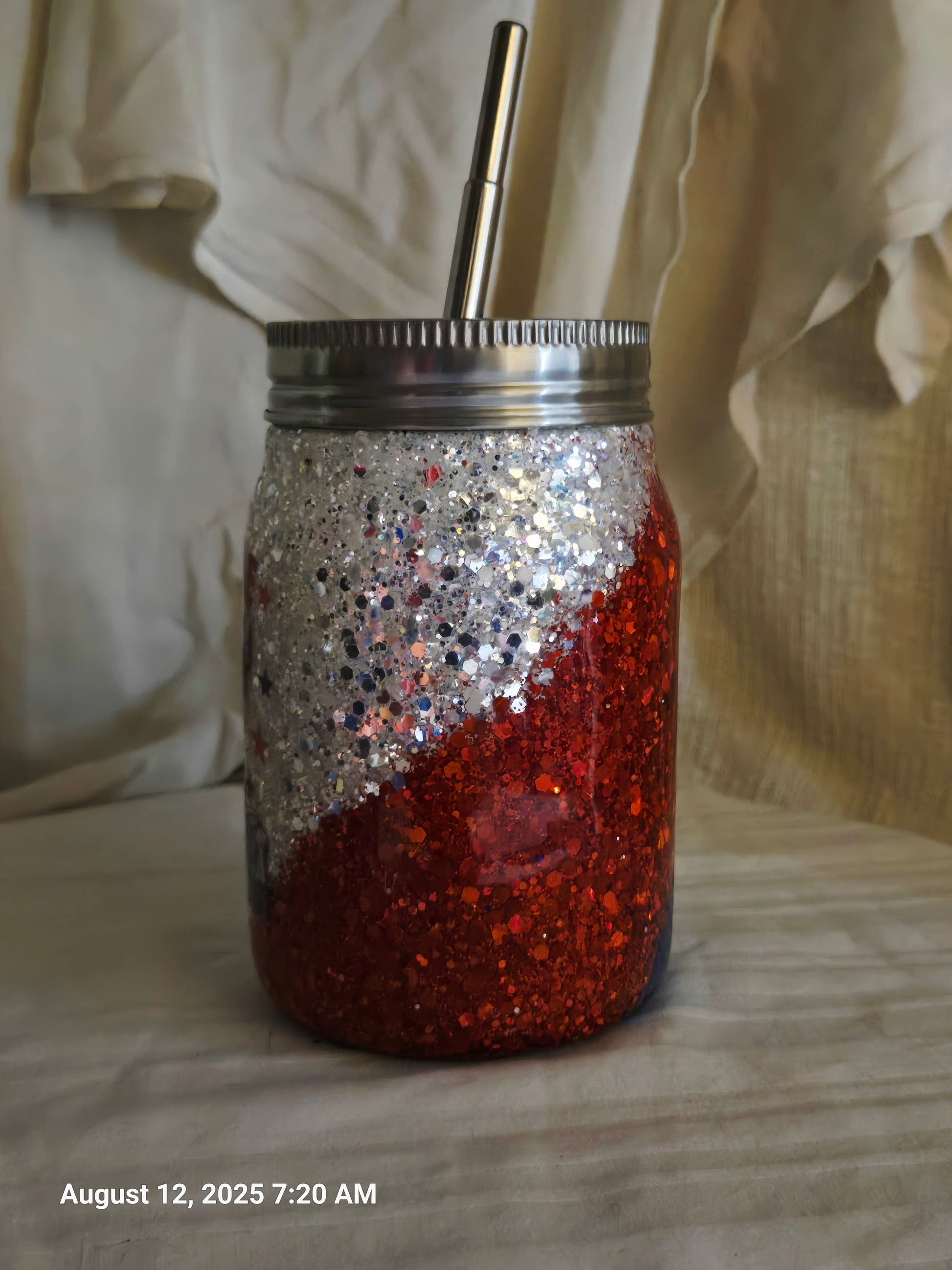 Keep your drinks cool and your vibes cooler with this 12oz insulated stainless steel mason jar tumbler. Featuring bold diagonal stripes in white, silver, red, and blue, plus a cheeky “Chill the 4th Out” decal, it’s your go-to for patriotic picnics, BBQs, and fireworks shows. The screw-on lid and collapsible straw make it spill-safe and travel-ready, while double-wall insulation keeps beverages cold for hours. Perfect for iced coffee, lemonade, or a little something stronger while you celebrate in style.