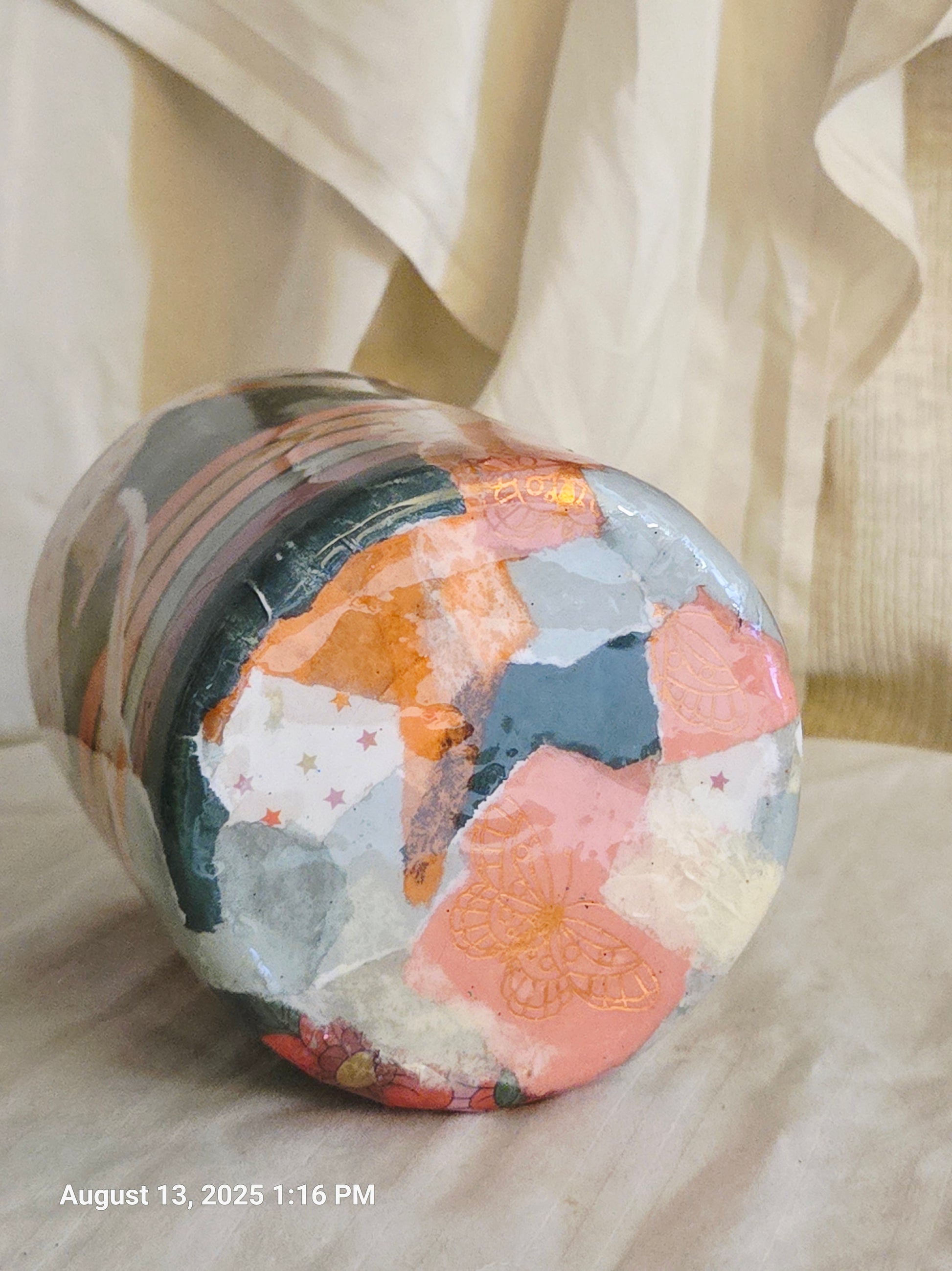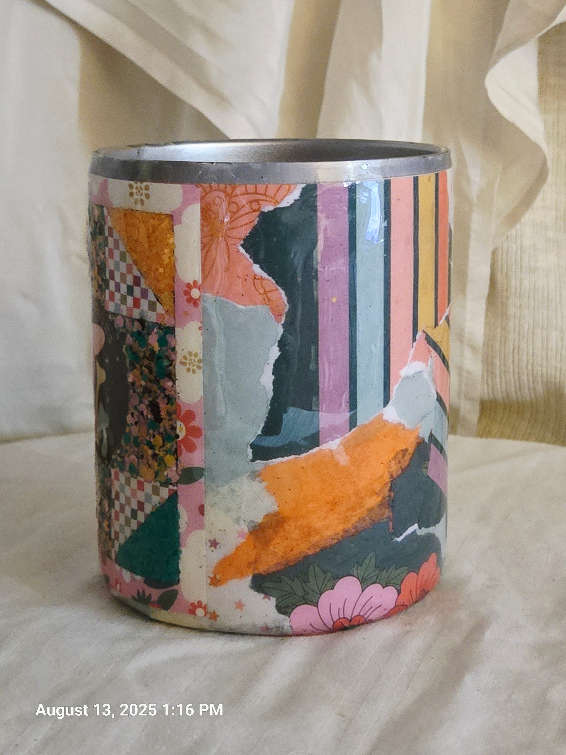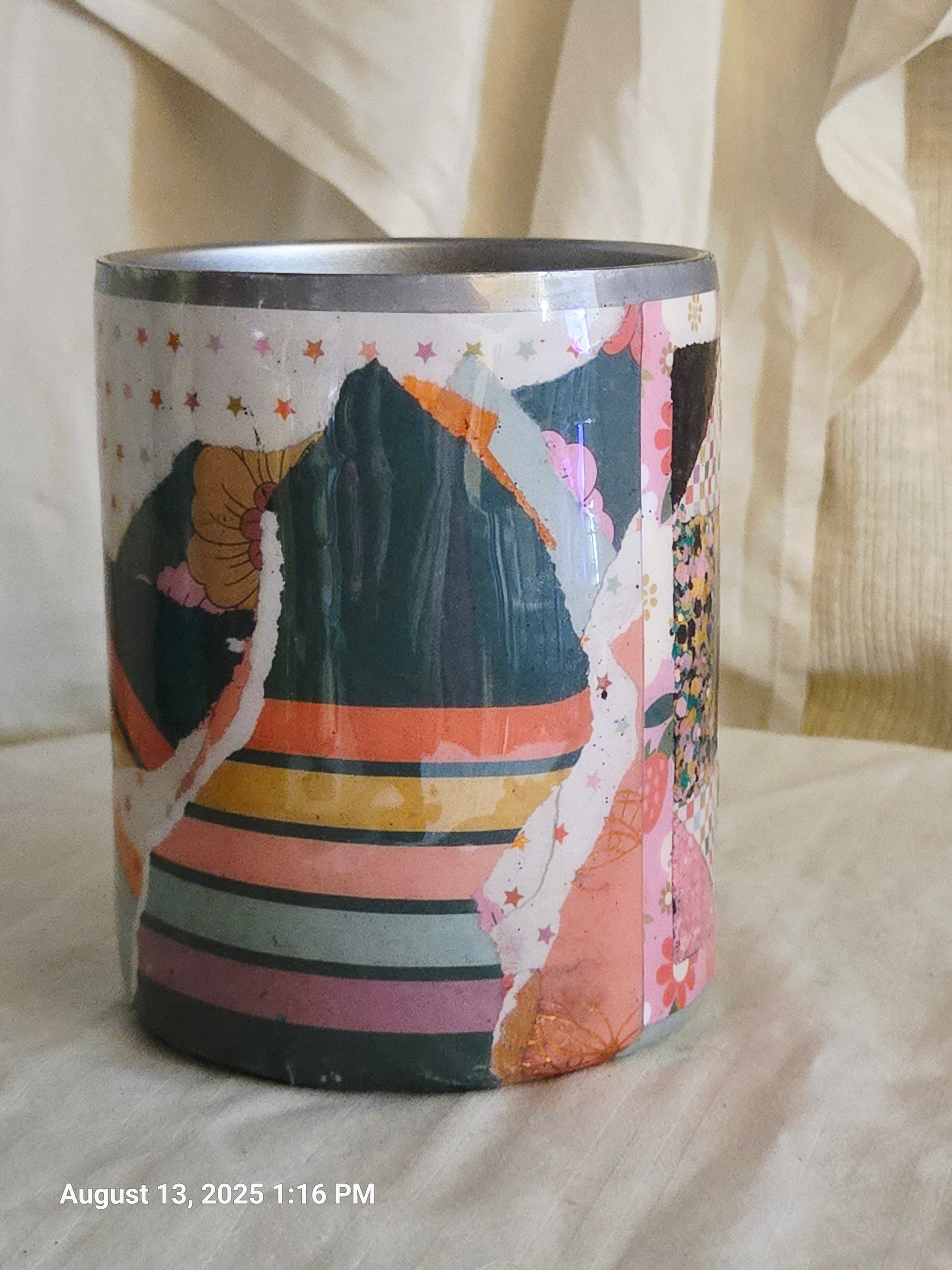 Channel retro vibes with this 12oz lowball insulated stainless steel tumbler, includes lid & straw. Featuring a ’70s-inspired découpage of warm, far-ouy colors and patterns, it wraps around with a broken rainbow for a playful, nostalgic feel. The front showcases a picture-frame-style center with glitter blocks highlighting a charming mushroom family and the uplifting phrase “Keep Growing.” Double-wall insulation keeps your favorite drinks hot or cold for hours, making it perfect for cozy evenings, coffee runs, or showing off your love for all things retro and whimsical.