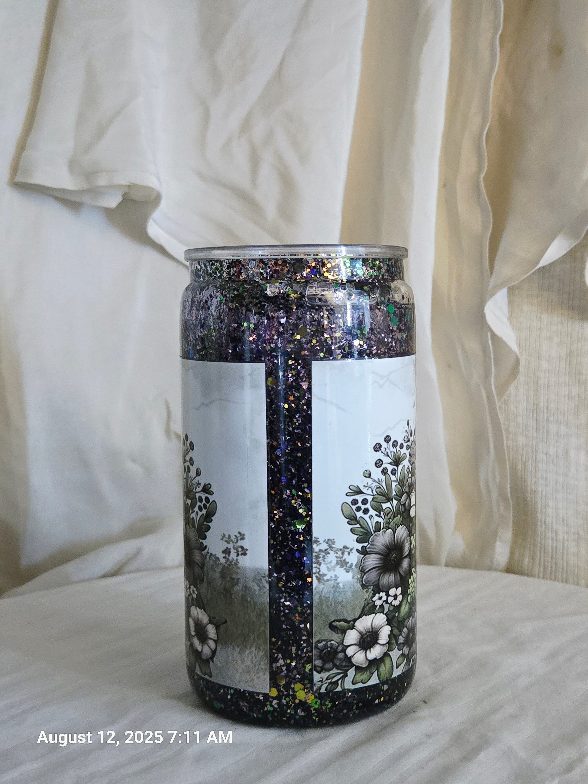 16oz Acrylic SnowGlobe16oz Acrylic Snow Globe Tumbler – Features a charming highland cow with butterflies and flowers, packed with shimmering glitter